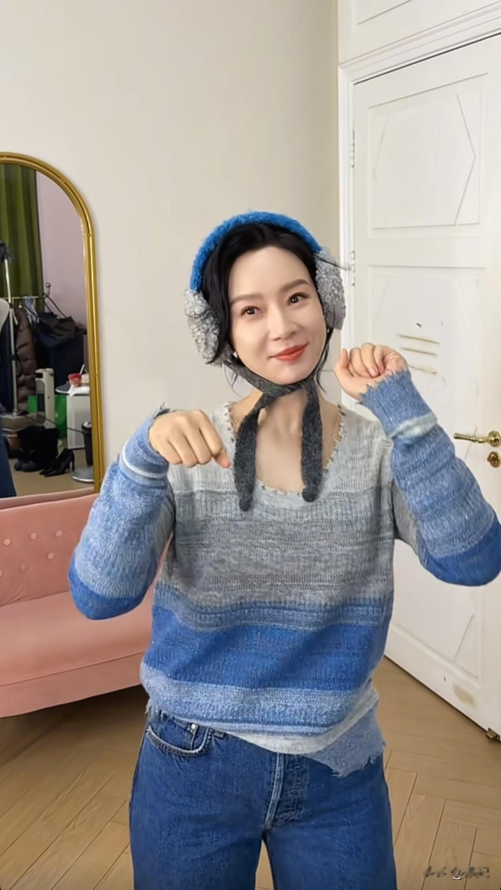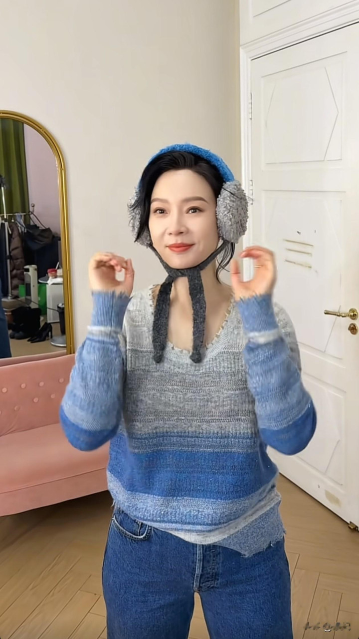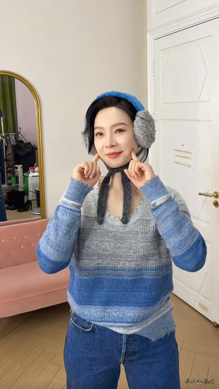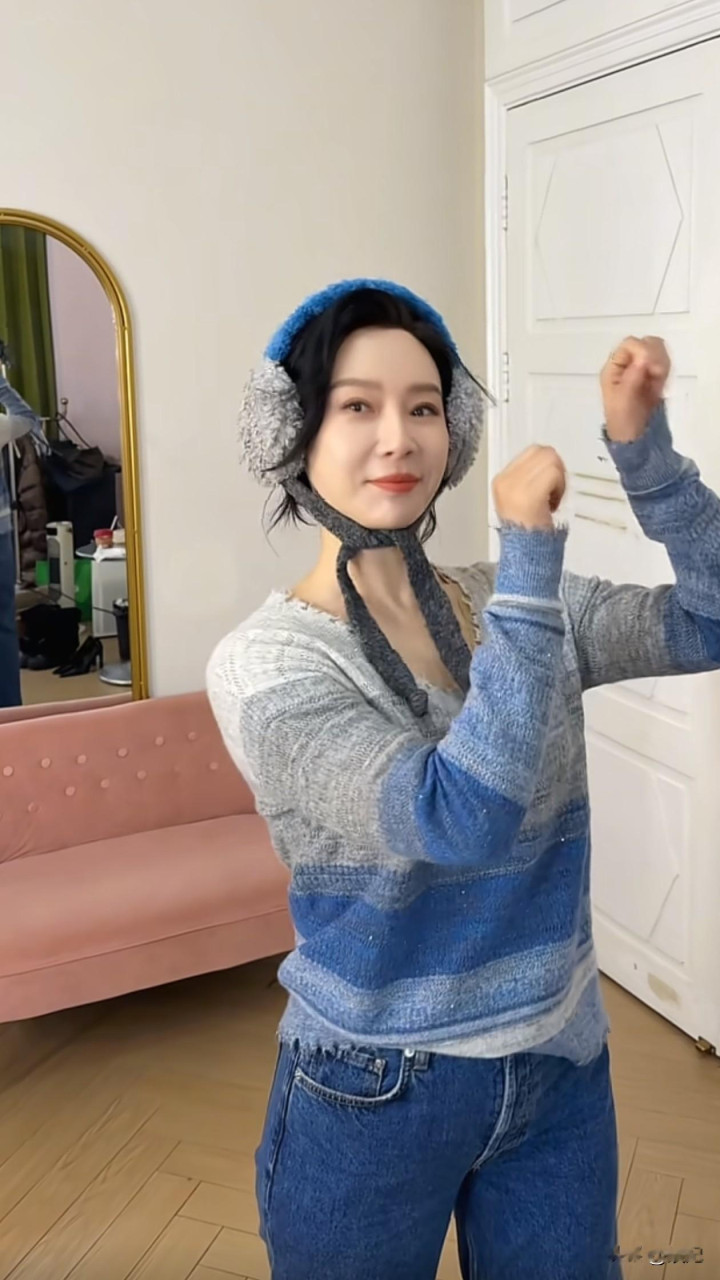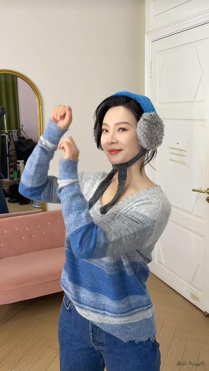 48岁陈数跳手势舞: 毛衣+牛仔裤, 减龄又洋气, 状态好得像小姑娘